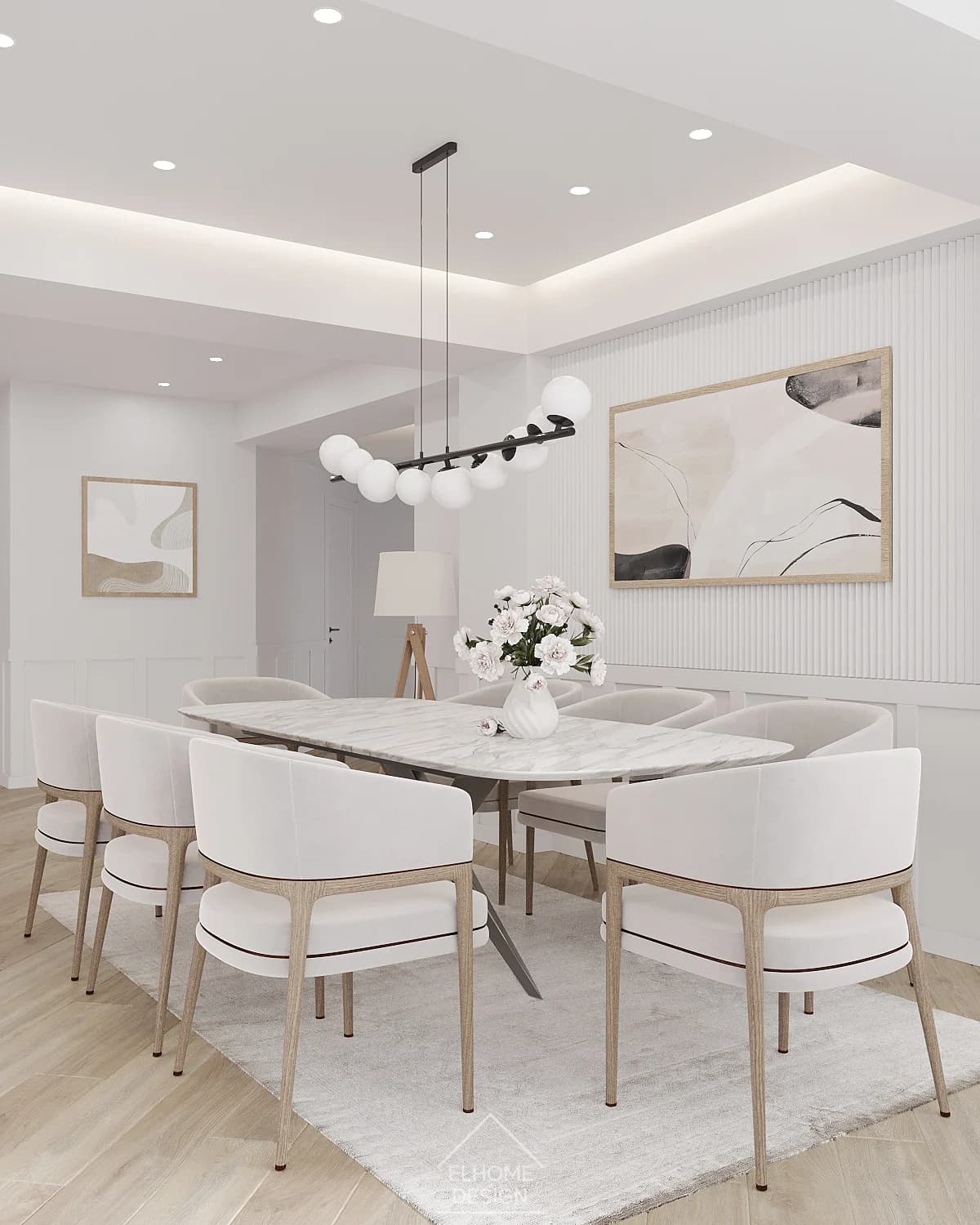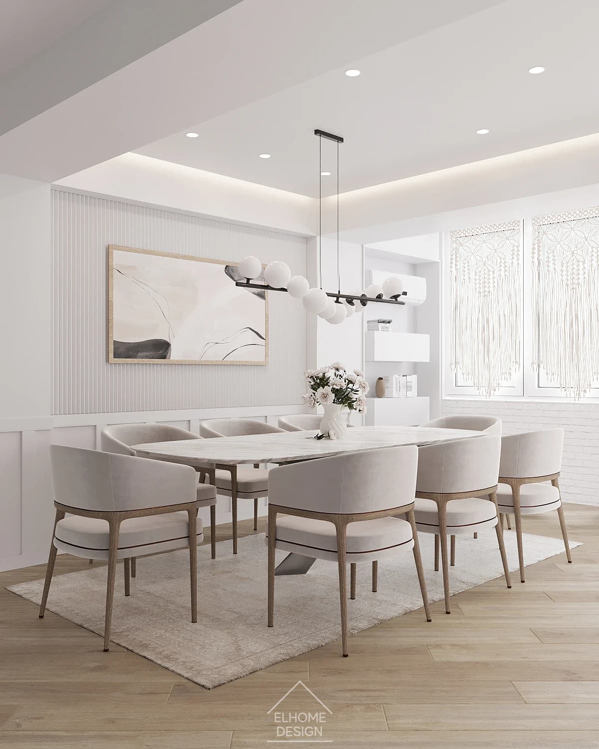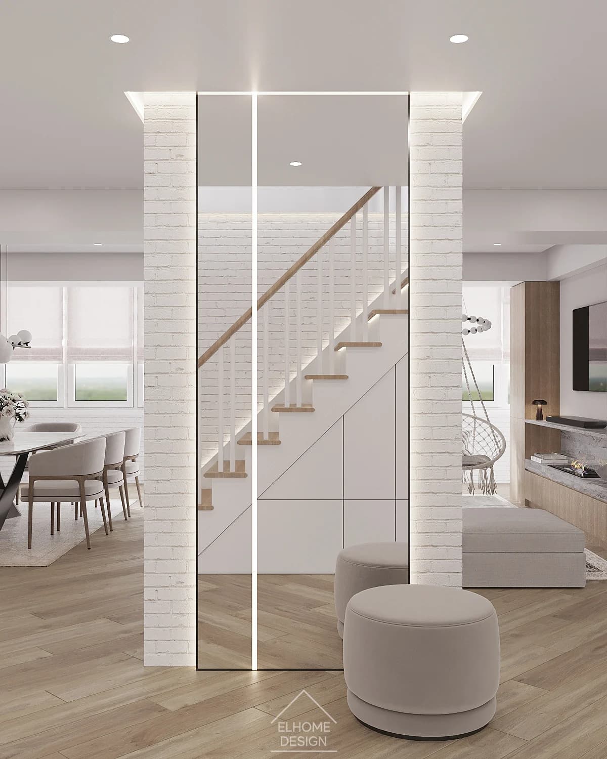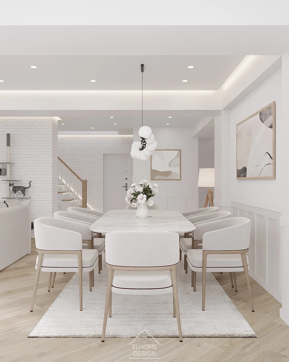 Proiectul Family House a răspuns provocării de a crea un spațiu familial primitor, funcțional și personalizat, în care fiecare element contribuie la armonie și confort. Designul se bazează pe o paletă luminoasă și materiale naturale, care oferă senzația de curățenie, spațialitate și liniște. Iluminarea pe mai multe niveluri — de la spoturi încastrate în tavan la benzi LED ascunse și lămpi de accent — permite scenarii variate de iluminat și evidențiază funcționalitatea fiecărei zone. S-a acordat o atenție deosebită integrării soluțiilor de depozitare: de la un dressing spațios la dulapuri încorporate, toate contribuind la reducerea aglomerației vizuale. Elemente naturale — plante de interior și texturi organice — aduc prospețime și confort, iar detalii personalizate, precum un scaun suspendat sau rafturi pentru pisici, transformă interiorul într-un cămin unic și autentic.